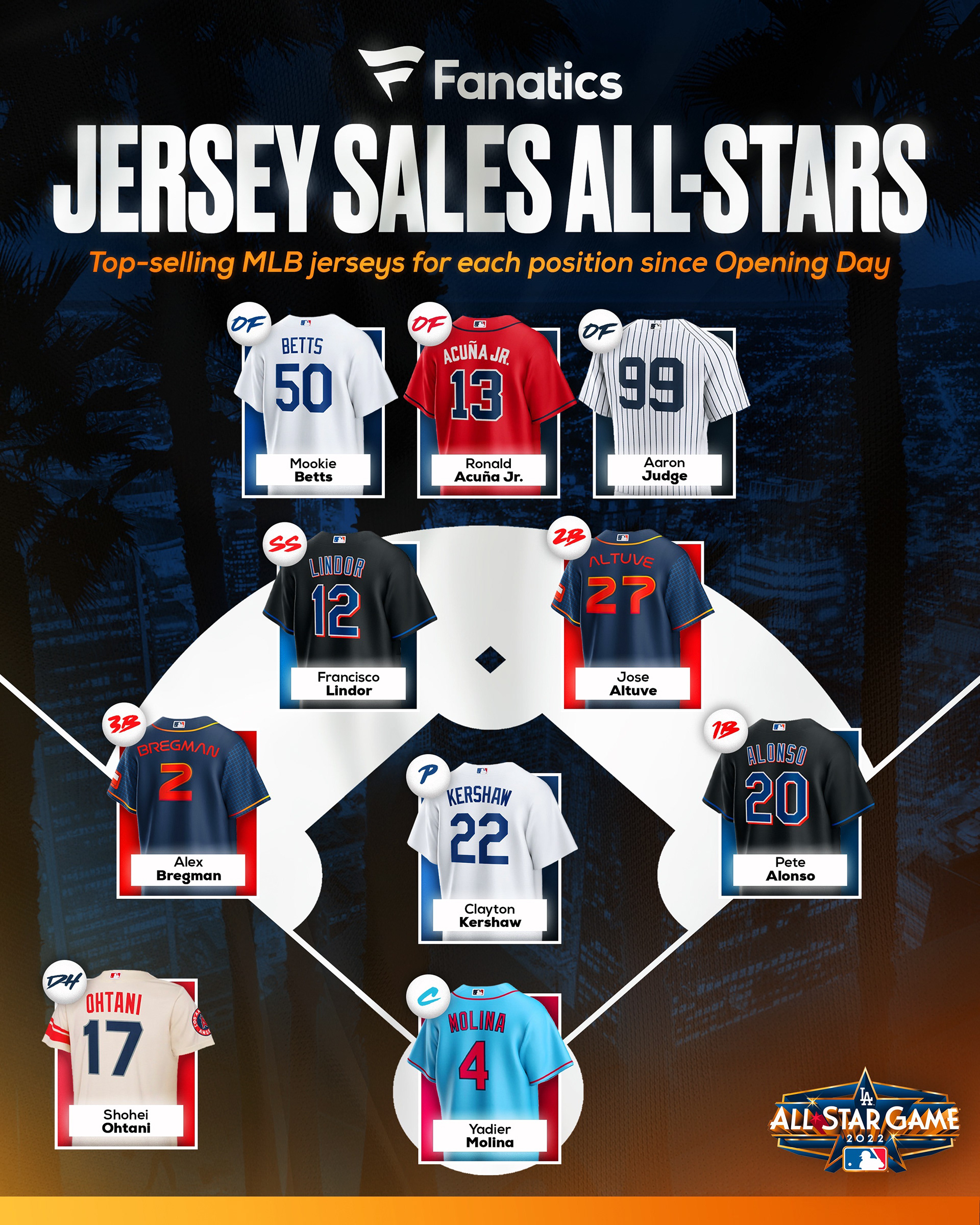 Other Fanatics projects including NHL Shop emails, TOPPS social media posts, jersey sale marketing graphics, and Fanatics College infographics.